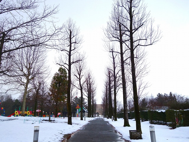 四季彩館から公園に続くユリノキ並木!