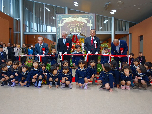 テープカット しょうがわ認定こども園そら組28名の皆さんが開会式に花を添えてくれました。