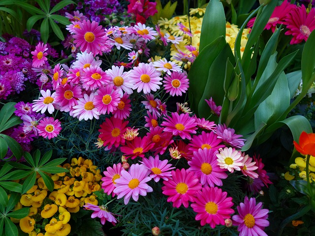 ボロニア ピナータ 、カルセオラリア、ペラルゴニウム、マーガレット