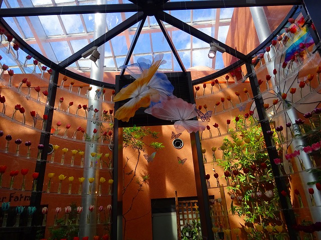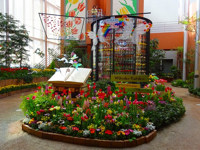 「想いをつなぐ となみ花物語」をテーマに、所々に配した蝶があちこちに飛び出す演出は、物語の世界が現実へと広がる様子を表現します。