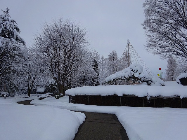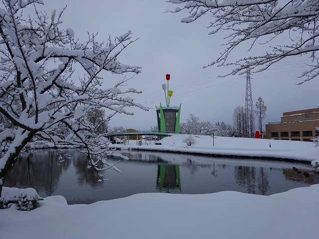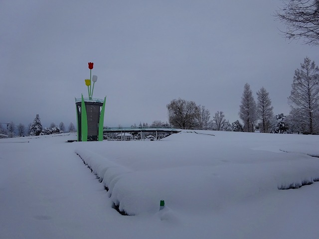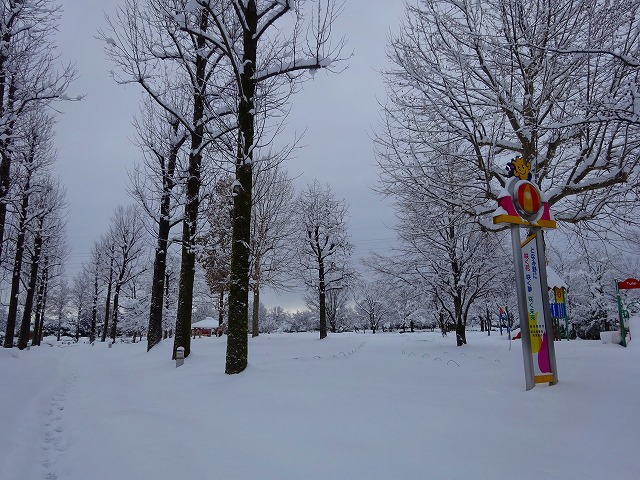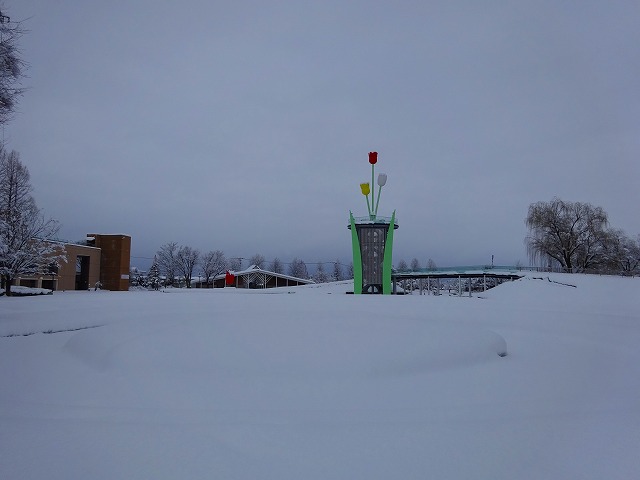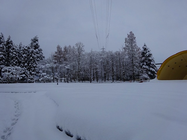 砺波市の積雪は59cm!公園はすっぽり雪に覆われています。