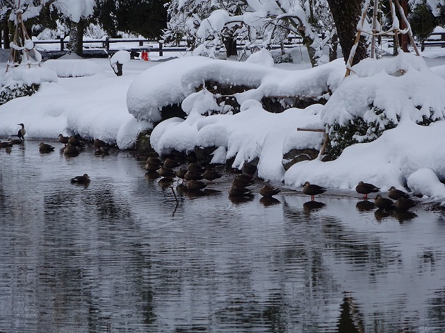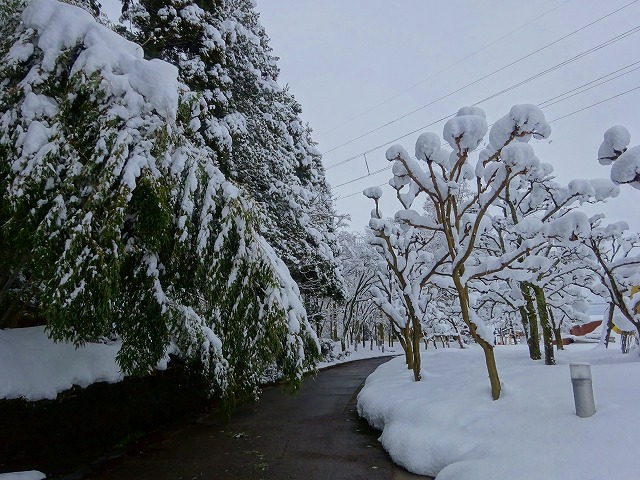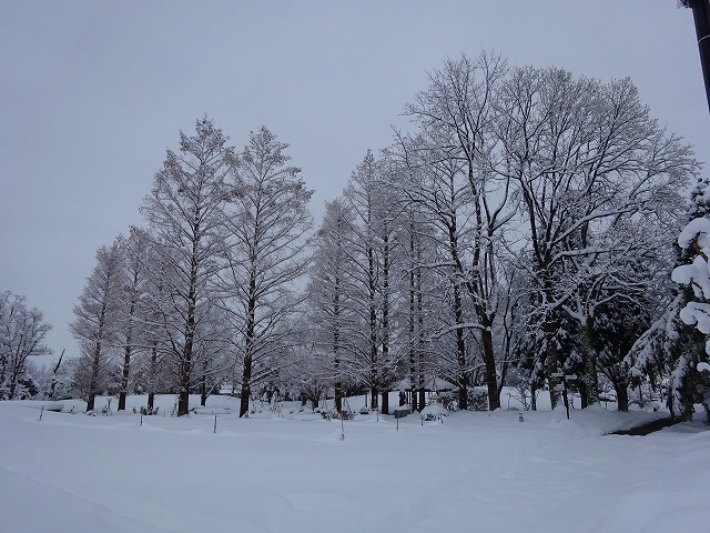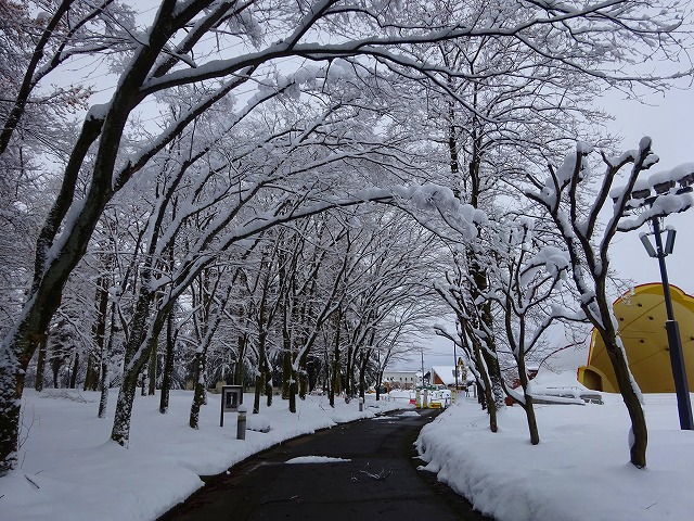 公園の木々には雪の花!!ひょうたん池そばのさくらキ並木!