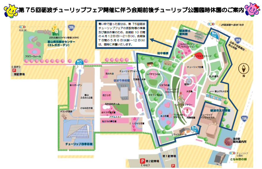 第75回砺波チューリップフェア開催に伴う会期前後チューリップ公園臨時休園のご案内