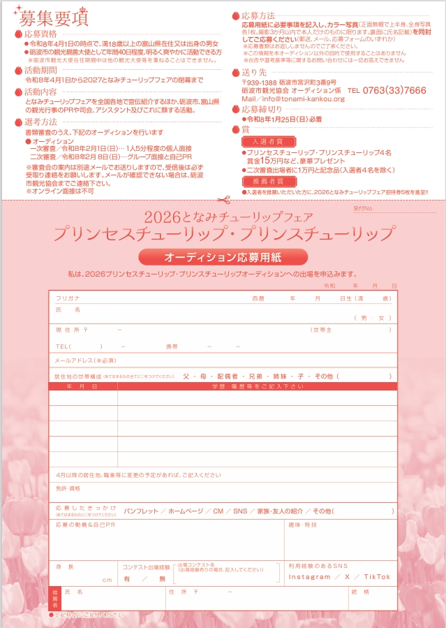 2026プリンセス(プリンス)チューリップオーディション応募用紙はこちらから