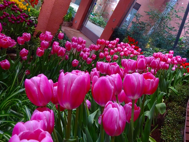 パレットガーデンでは、温度を15℃に設定し促成、抑制、露地栽培の3つの方法で、1年中チューリップが咲いています♪