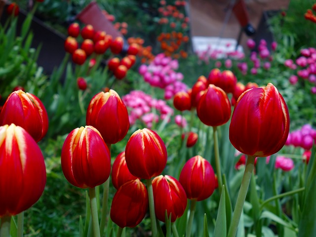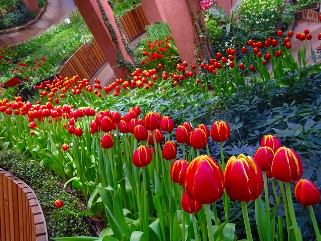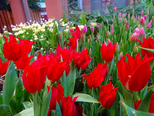パレットガーデンでは、温度を15℃に設定し促成、抑制、露地栽培の3つの方法で、1年中チューリップが咲いています♪