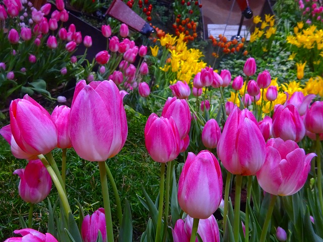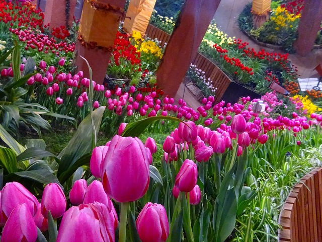 パレットガーデンでは、温度を15℃に設定し促成、抑制、露地栽培の3つの方法で、1年中チューリップが咲いています♪